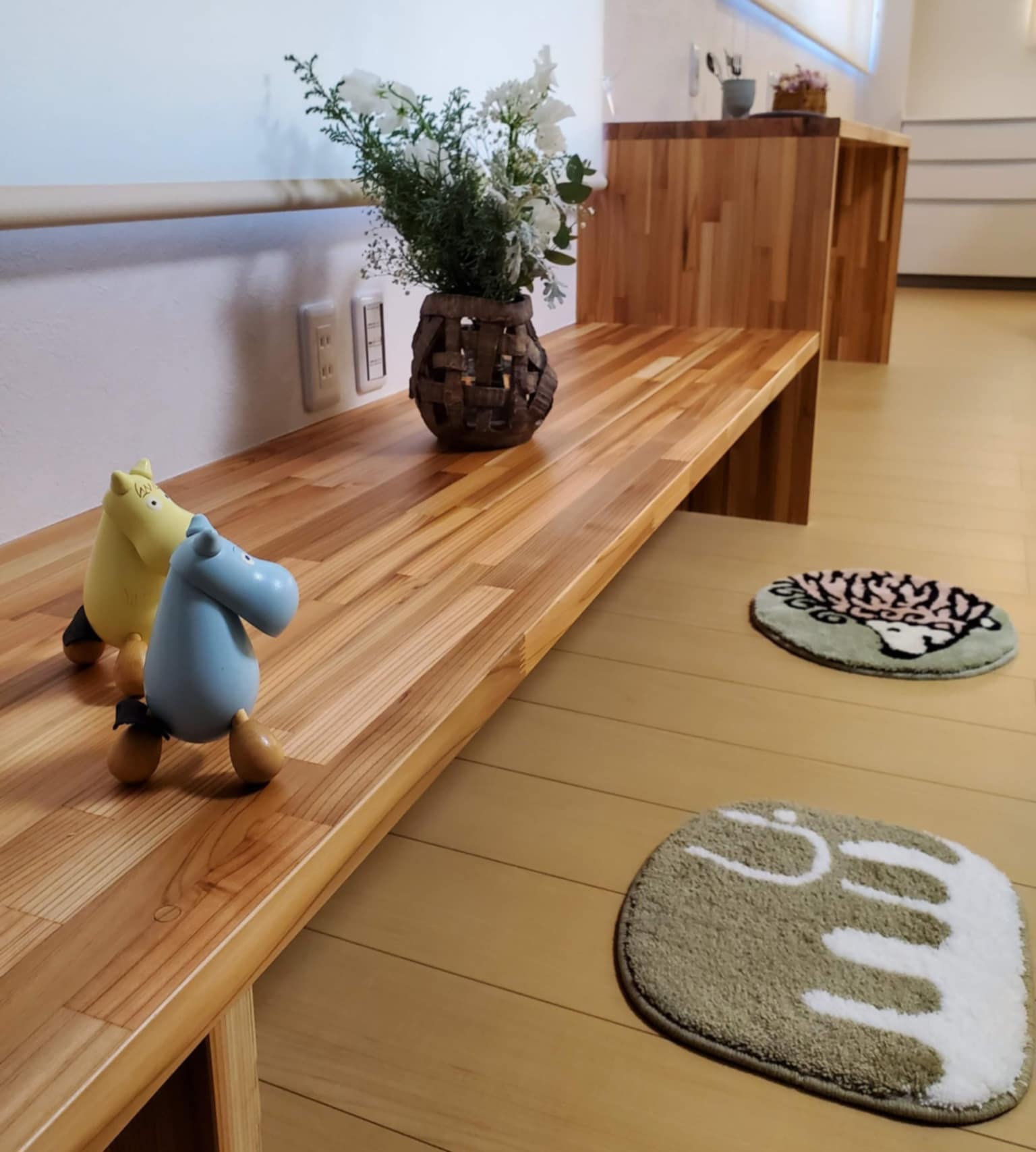 そこには、木製のムーミンとミーのオブジェをさりげなく置き、北欧らしい遊び心をプラスしました。